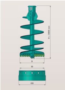 Its flights increase diameter gradually as a spiral and round shank chisels are placed along the borderline up to the cutting edge. So that rock formation can be ripped progressively with excellent results All augers have central pipe diameter and thickness together with flights pitch and thickness designed accordingly with XP rotary